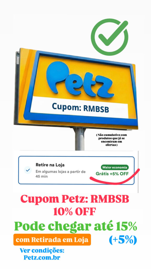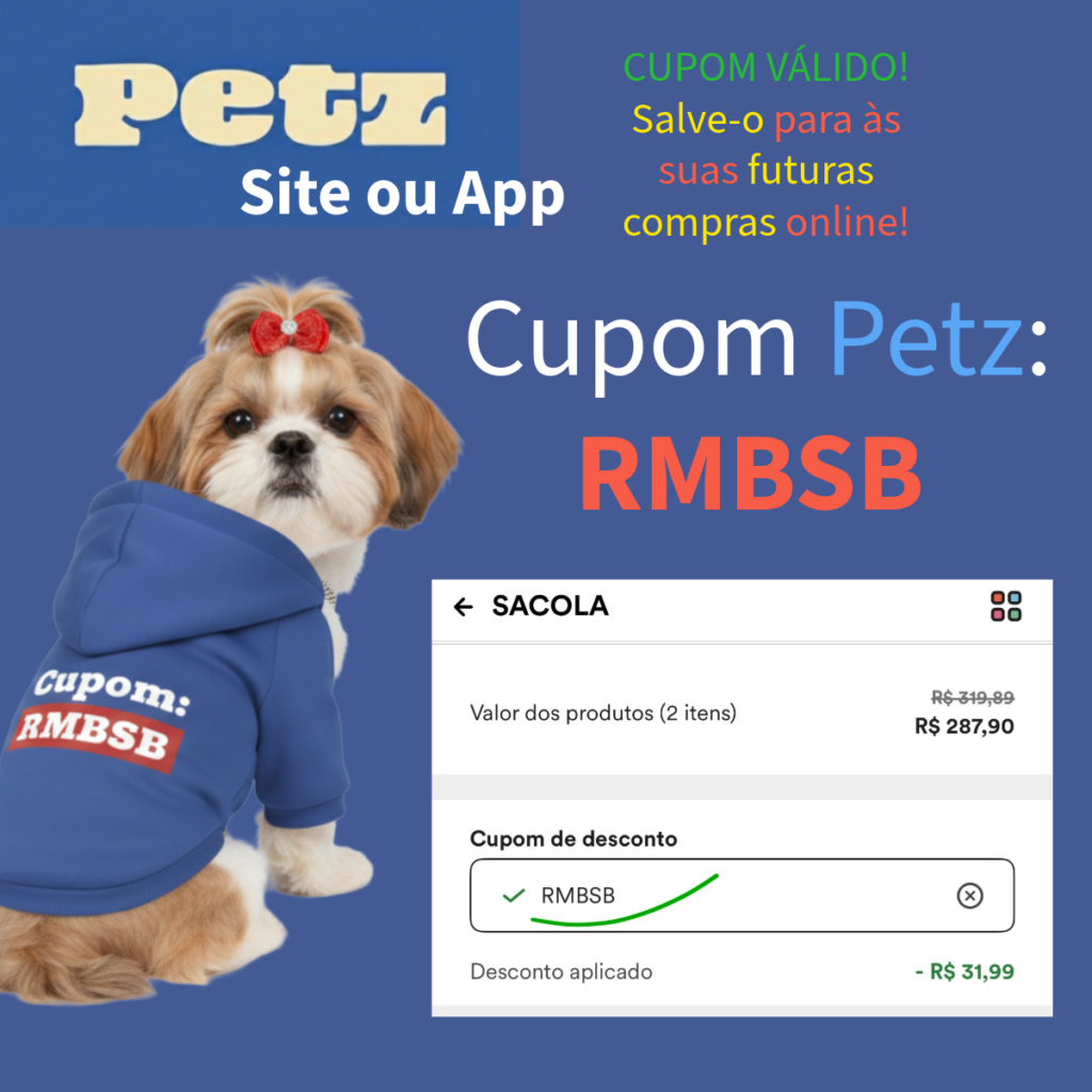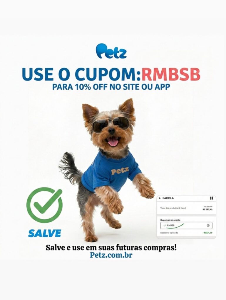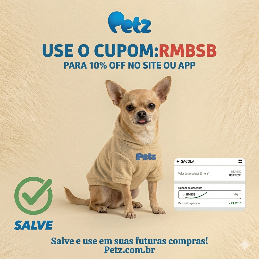 Sim, o Cupom Petz RMBSB está ativo hoje e verificado! Com o Cupom RMBSB da Petz, hoje mesmo, você pode garantir a economia em 2026 em suas compras online! E o melhor de tudo, o Cupom Petz RMBSB, é um cupom permanente / múltiplo uso, ou seja, você pode usá-lo sempre que quiser! Por isso é importante entender essa informação que é um cupom de desconto especial, de um Parceiro Petz Oficial! O Cupom Petz RMBSB de 10% off é melhor que os tradicionais cupons mensais de 2026, pois ele foi feito para a compra recorrente! Você, agora que descobriu essa dica de economia na Petz com o uso do Cupom de Desconto RMBSB não precisa ficar triste por ter usado cupom de primeira compra da Petz e ele ter acabado! A solução está aqui! O Cupom Petz RMBSB Petz é para você salvar e compartilhar com os seus amigos que amam um desconto nas rações, tapetes higiênicos, anti pulgas, farmácia Petz, brinquedos pet, e tantos outros suprimentos para cães e gatos e para outros animais domésticos. Agora me diga: Com esta dica de como economizar na Petz em suas compras online no site Petz.com.br ou App: Petz, você está pronto pronto para usar o cupom RMBSB da Petz agora em 2026?