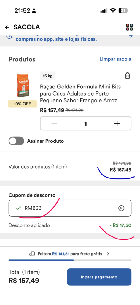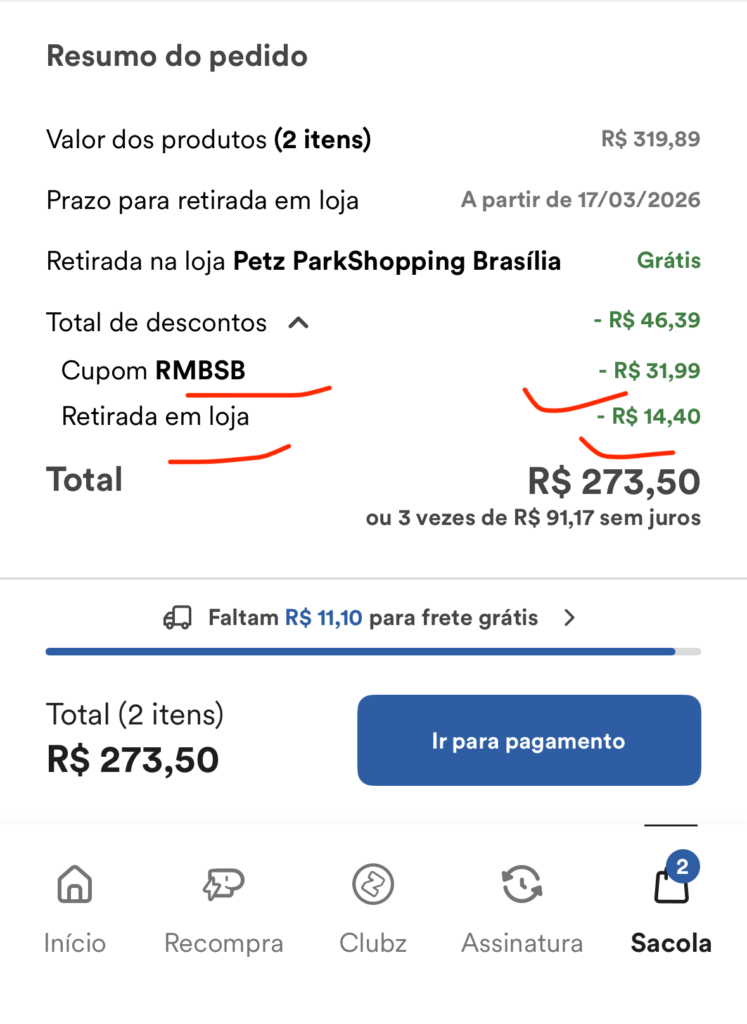 Mesmo que você esteja comprando apenas 1 produto, naquela compra específica, e ainda o desconto não seja acumulado, Sempre deixe o Cupom Petz: RMBSB ativo no seu carrinho!